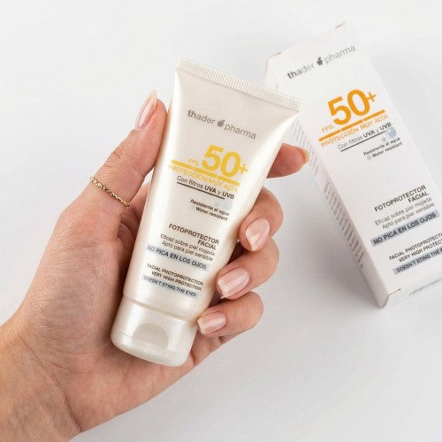 THADER PHARMA SUN cuida de la piel de tu rostro y cuerpo y opta por la prevención, reparación e hidratación intensa, integrando sus mejores filtros UVA/UVB en una textura rica pero no grasa ni pegajosa exclusiva para una doble protección contra el sol y el envejecimiento solar.